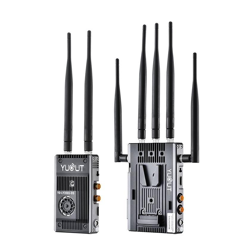歐陸1000無線圖傳采用的是廣播級以色列技術方案,能夠實現廣電級別的無損、無壓縮、無延時的3G SDI或者全高清HDMI信號傳輸。本產品包含一臺發射器和一臺接收器,并且都配備了3G/HD SDI接口和全高清HDMI接口。 發射器有2根天線,接收器有5根;所有的天線都工作在4.9GHz-5.9GHz頻率范圍,可以通過軟件配置的方式來更改天線的工作頻率,以適應全球不同區域的無線傳輸要求。 同時,在發射器和接受器側面,配備了通信通道選擇按鍵,可以手動配置10個不同的通信通道,非常方便。